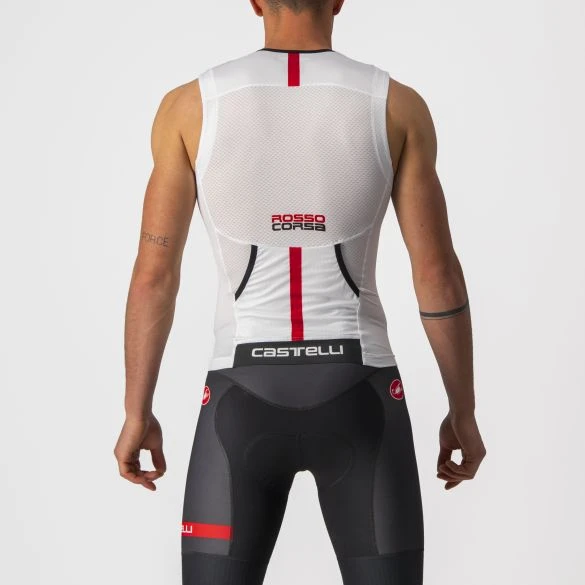 Deze Castelli Free tri 2 mouwloos top is volledig voorzien van deze top eigenschappen: de stof van de voorkant is rechtstreeks afkomstig van de Aero Race Jersey, en de stof van de rugkant biedt een maximaal ademend vermogen.