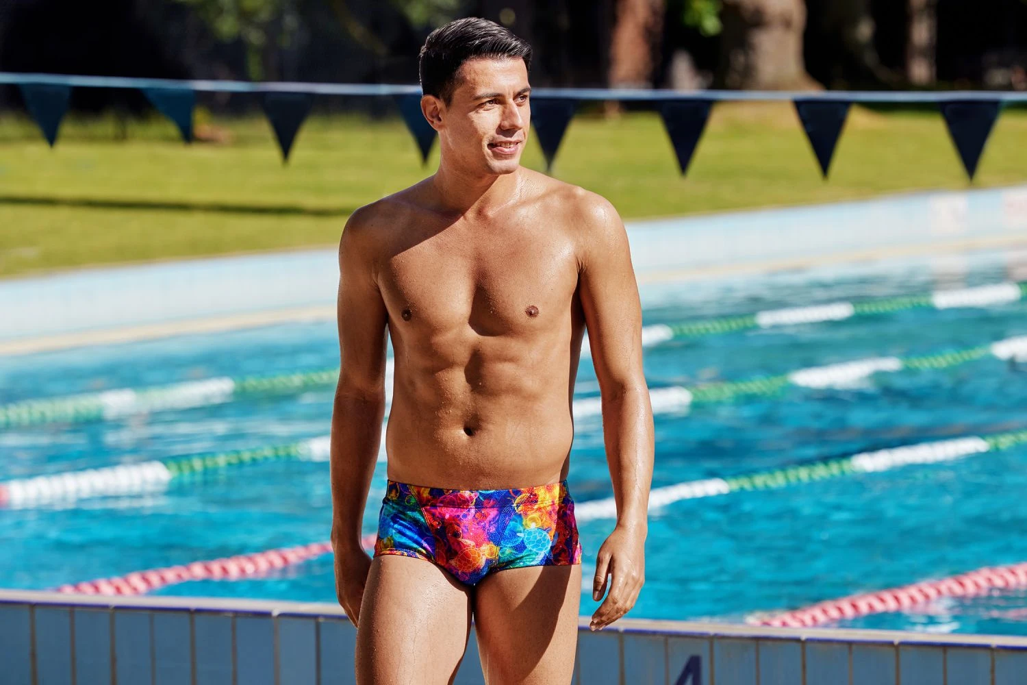 Deze Funky Trunks Classic Trunk zwembroek is een klassiek gesnede korte zwembroek met zijkanten van 8cm en een platte elastiche tailleband.