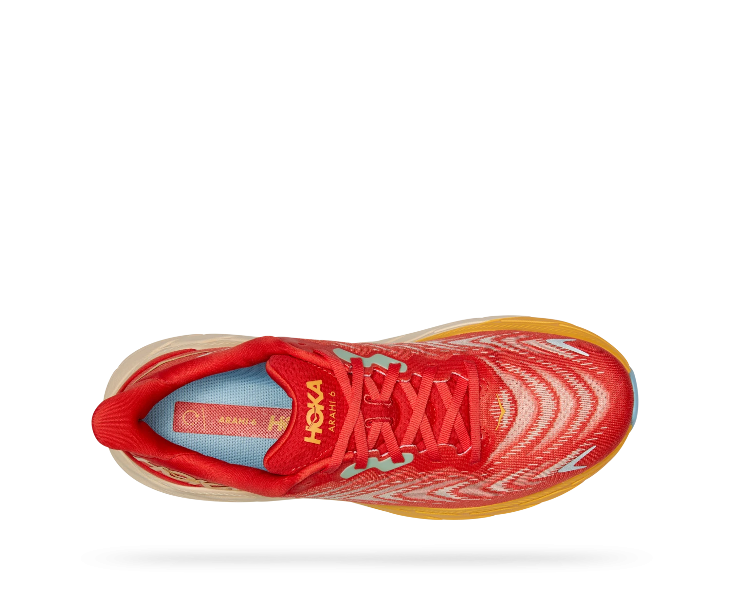 Hoka One One Hoka Arahi 6 Hardloopschoenen Rood/geel Heren -Sportwetsuit Winkel hoka one one logo 7