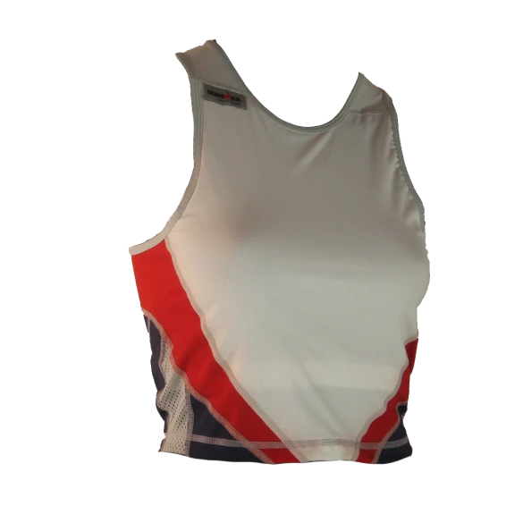 De Ironman tri top mouwloos extreme wit/rood/blauw dames is een korter tri topje ontworpen voor de korte en middelange afstanden.