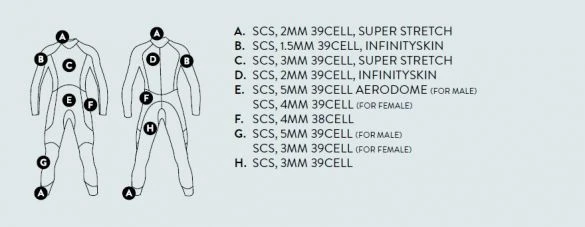 Het wetsuit is hoofdzakelijk opgebouwt uit Yamamoto 39-cell neopreen, hierdoor heeft het wetsuit een zeer goede en mooie pasvorm en biedt het tevens een uitstekende flexibiliteit.